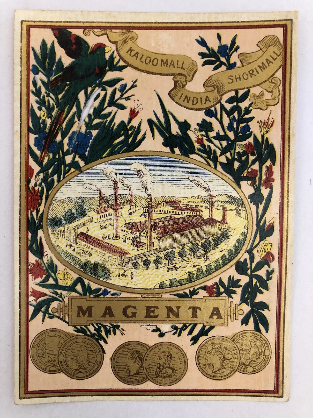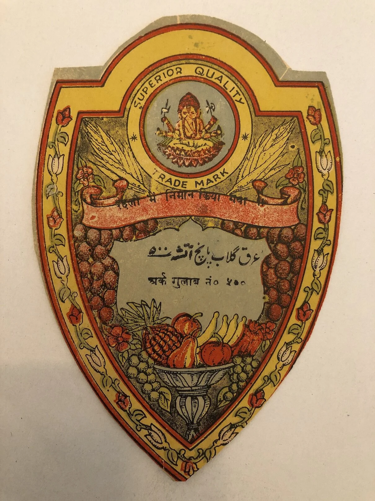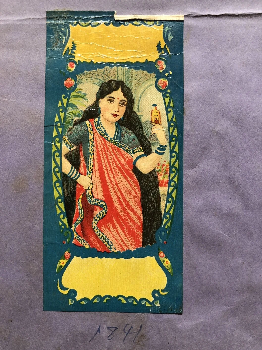 A label is a piece of paper, plastic, film, cloth, metal or any other material affixed to a container or product, on which is written or printed information or symbols about the product or item. Information printed directly on a container or article can be considered as labelling the product. From the mid 1890s, Raja Ravi Varma set up his own printing press and produced his own lithographic work as textile mill labels. This coincides with the success of the cotton mills in Mumbai, Calcutta, Karachi & Ahmedabad.