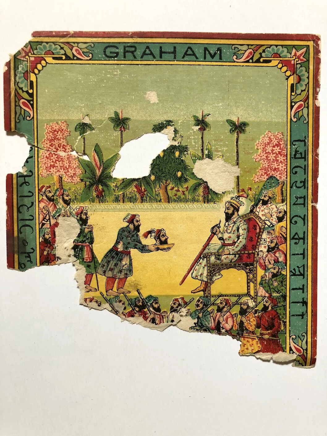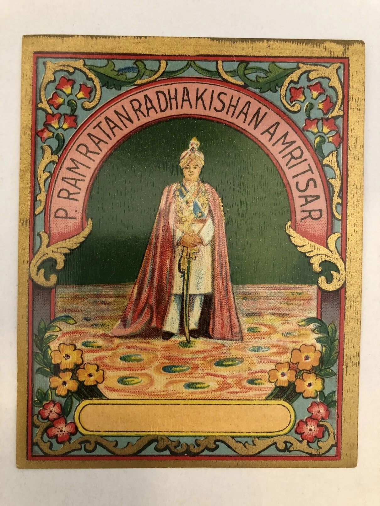Labels have many uses, including promotion and providing information on a product’s origin, manufacturer, its use and shelf life. Indian markets were flooded with British mill woven cotton goods, especially from the companies of Manchester & Glasgow. The Indian manufacturers used images of Indian gods and goddesses on the labels to make them more appealing to users in India. Images of Indian mythology, Indian flora & fauna, and even important and respected people were used to make them more desirable. The textile mill label is an essential visual reminder of trade in British India. The labels were also referred to as ‘tickets’ and ‘shipper’s tickets’, pasted on the bales of the cotton cloth from Manchester & Glasgow. In all likelihood, the cloth was manufactured from cotton fibre imported from India.